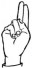 На ћирилици написано ЛАБУДА БРОШКОВИЋ састоји се из 15 слова [?]. Исписано ћириличном једноручном азбуком за глувонеме: